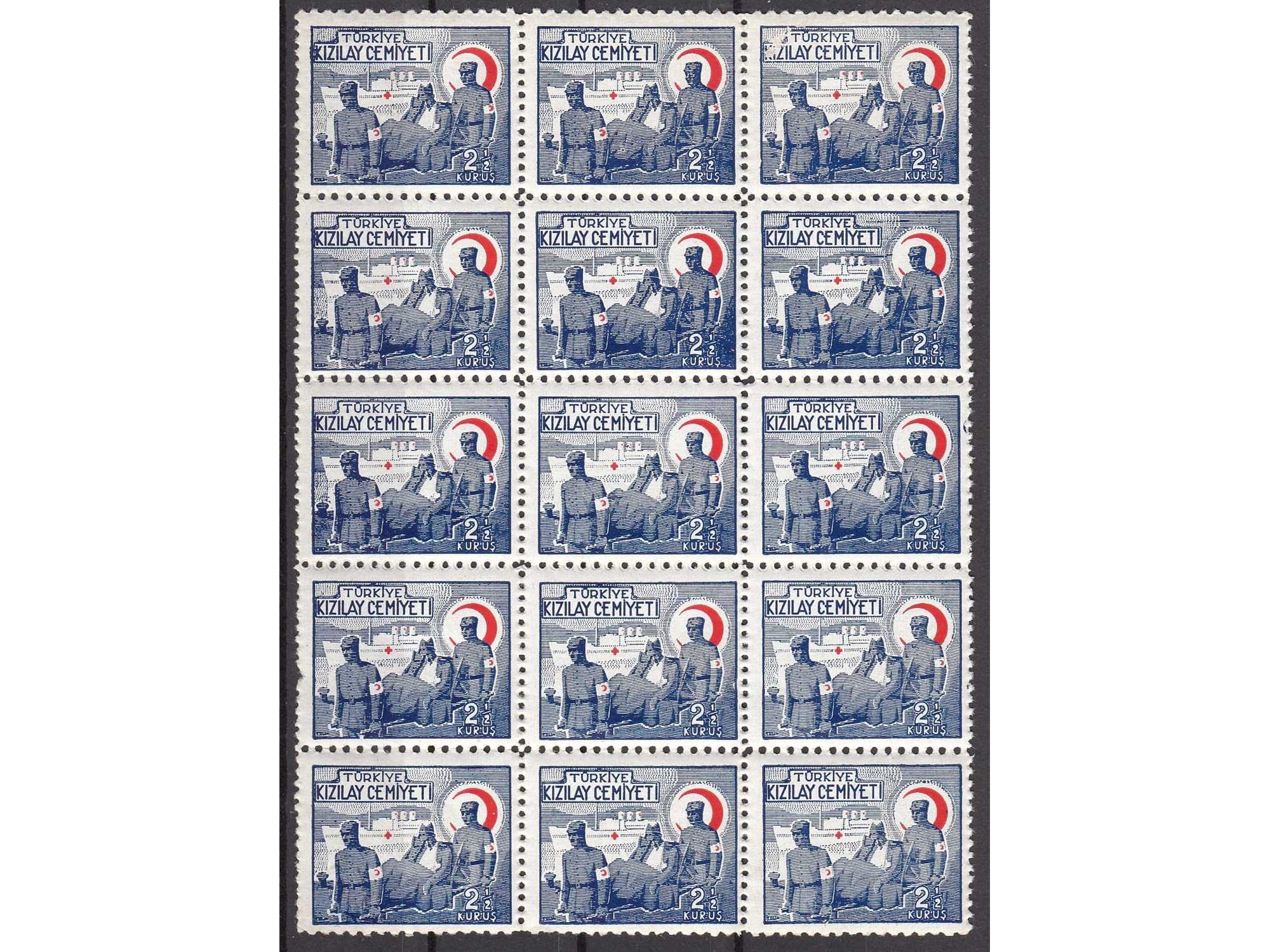 1944 - 1945 TÜRKİYE KIZILAY CEMİYETİ YARDIM PULLARI KIZILAY IN BAŞARILARI K64 15 Lİ BLOK MNH