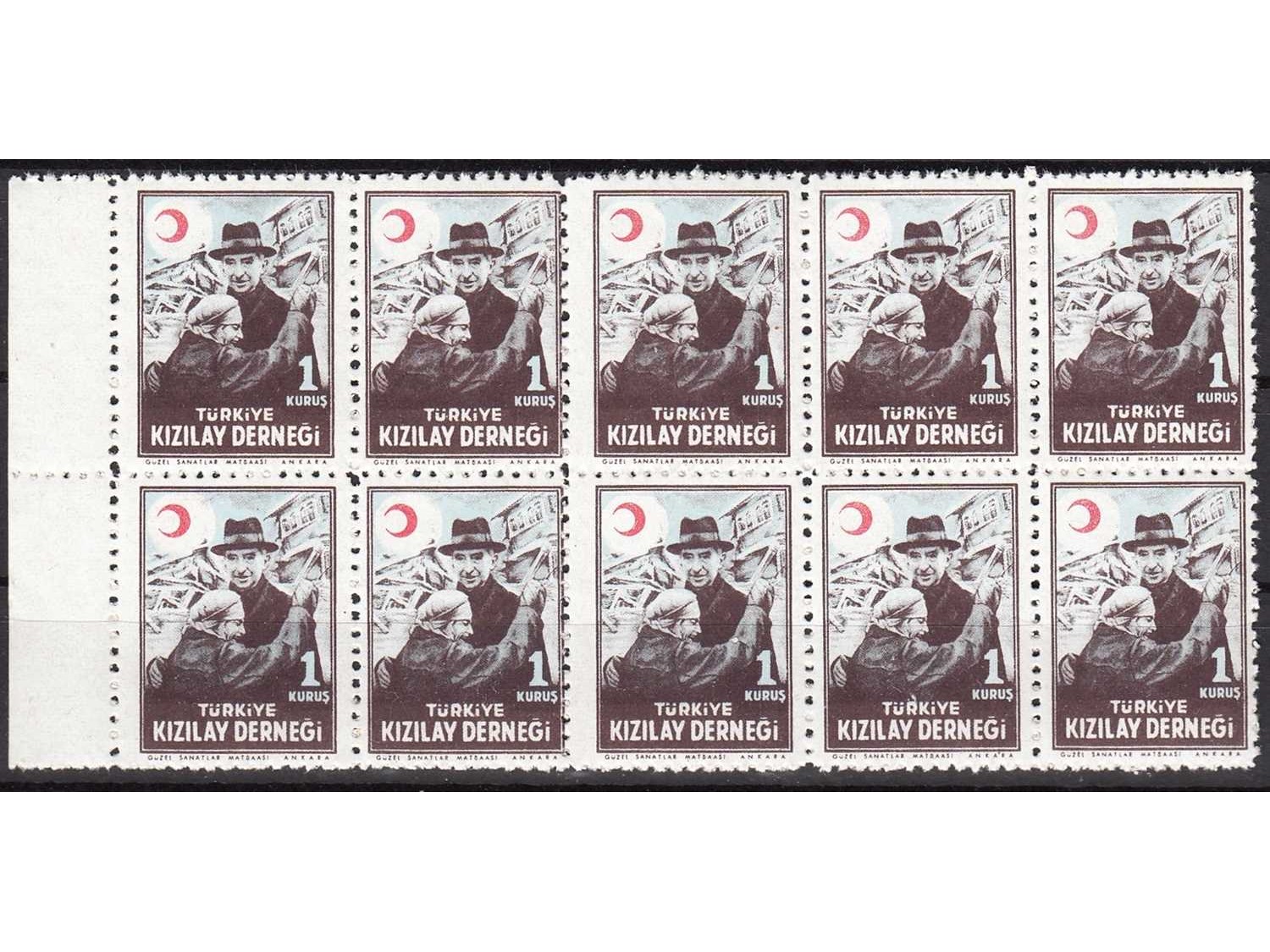 1946 TÜRKİYE KIZILAY DERNEĞİ PULLARI KIZILAY IN BAŞARILARI K79 10 LU BLOK MNH