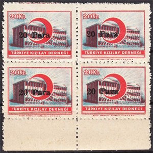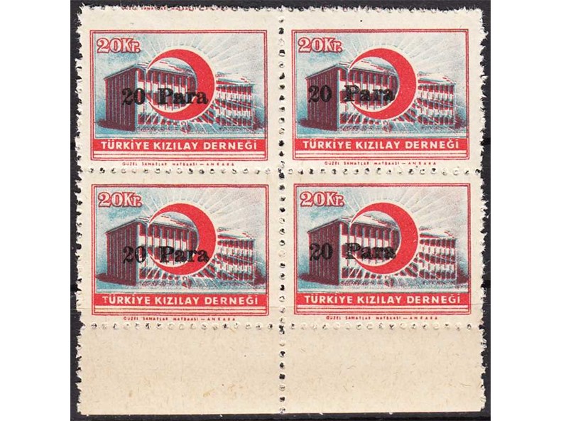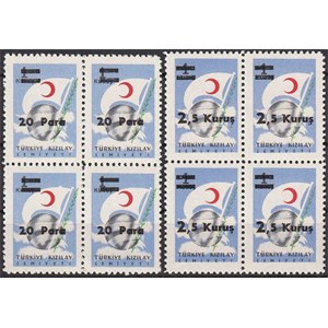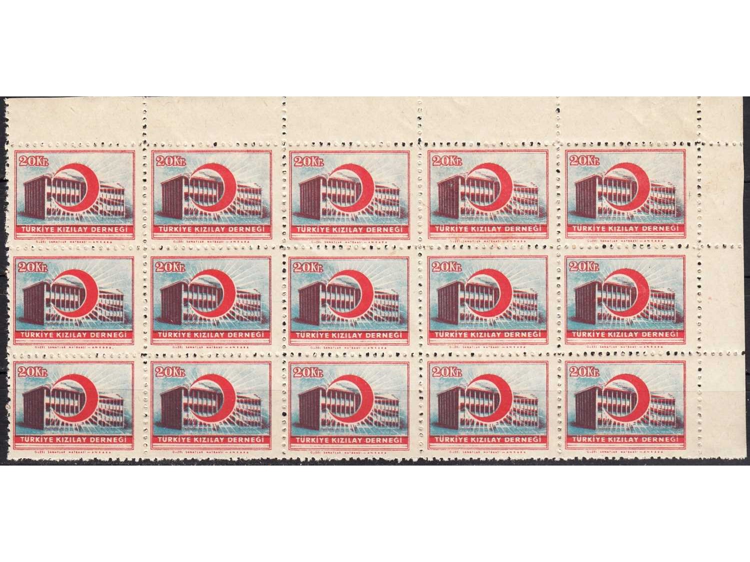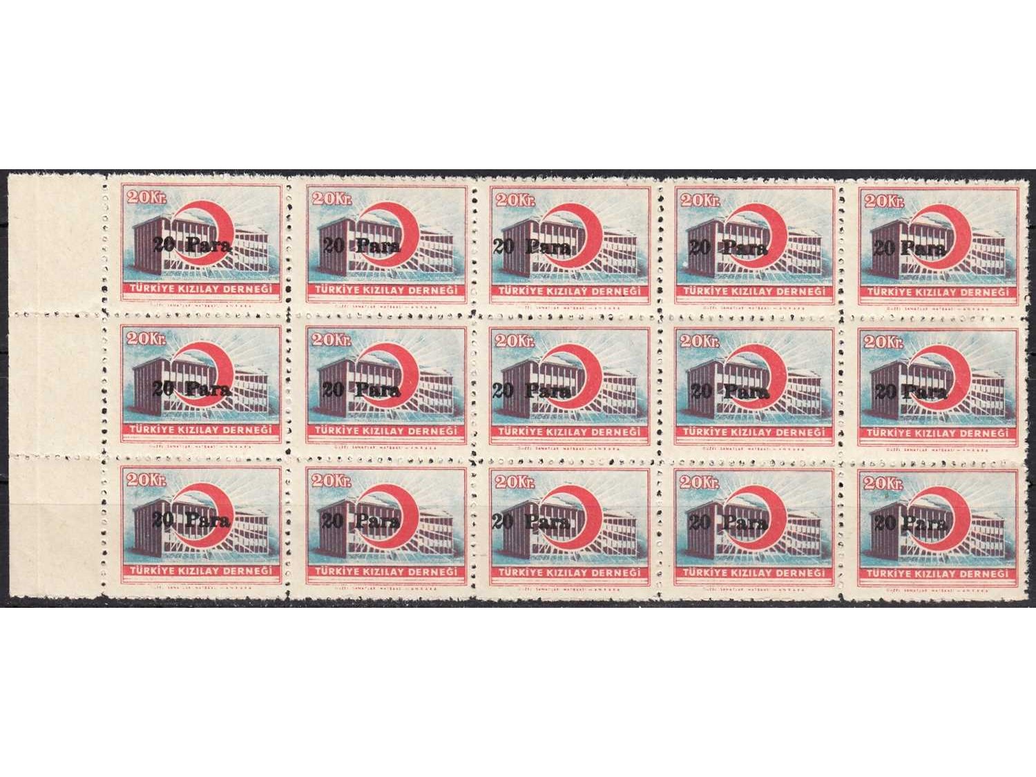 1955 20 PARA SÜRŞARJLI TÜRKİYE KIZILAY DERNEĞİ PULLARI K120 15 Lİ BLOK MNH