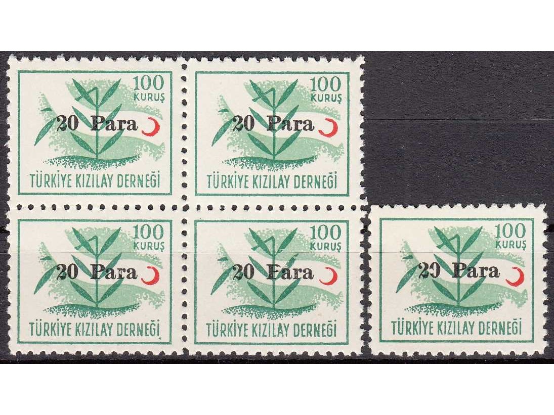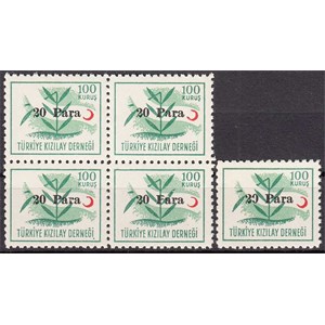 1955 20 PARA SÜRŞARJLI TÜRKİYE KIZILAY DERNEĞİ PULLARI K122 DBL VE TEK PUL MNH