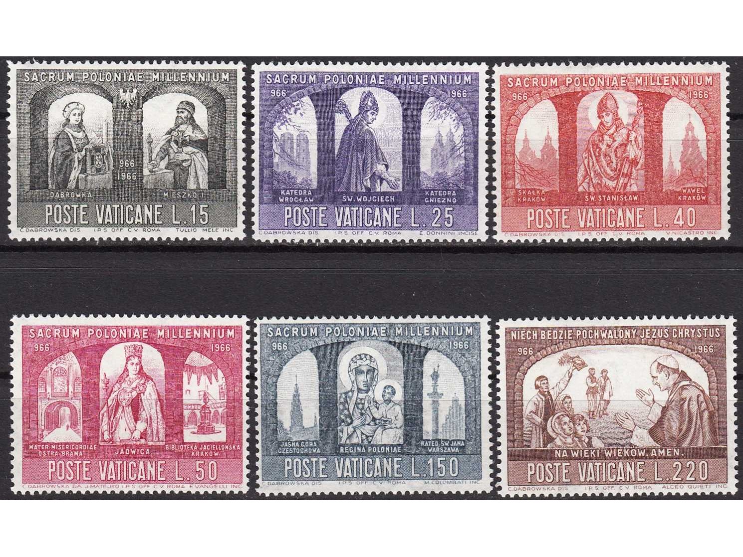 VATİKAN 1966 HRİSTİYANLIĞIN 1000. YILDÖNÜMÜ TAM SERİ MNH