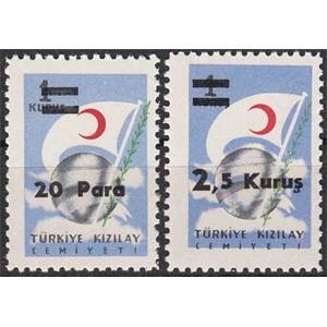 1955 20 PARA SÜRŞARJLI TÜRKİYE KIZILAY DERNEĞİ PULLARI K120 ABKLAÇ ERÖR DBL MNH