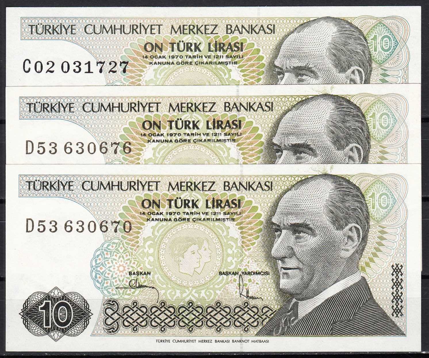 7. EMİSYON 10 LİRA C02 - D53 - D53 3 LÜ LOT ÇİL - ÇA