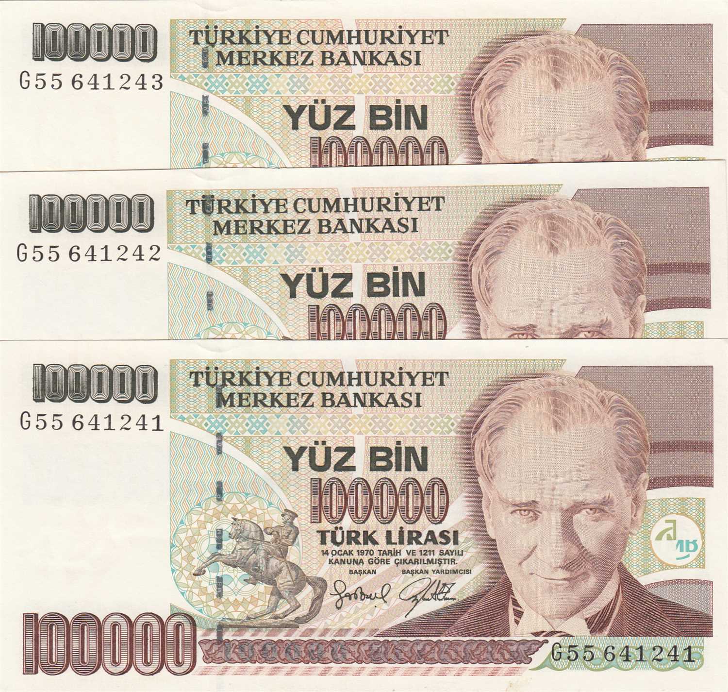 7. EMİSYON 100.000 LİRA G55 SERİ TAKİPLİ 3 LÜ LOT ÇİL