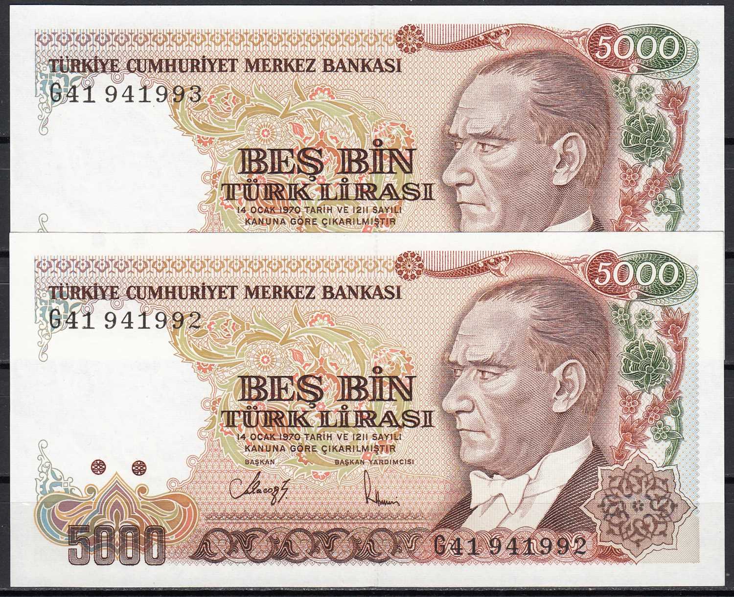 7. EMİSYON 5.000 LİRA G41 SERİ TAKİPLİ 2 Lİ LOT ÇİL