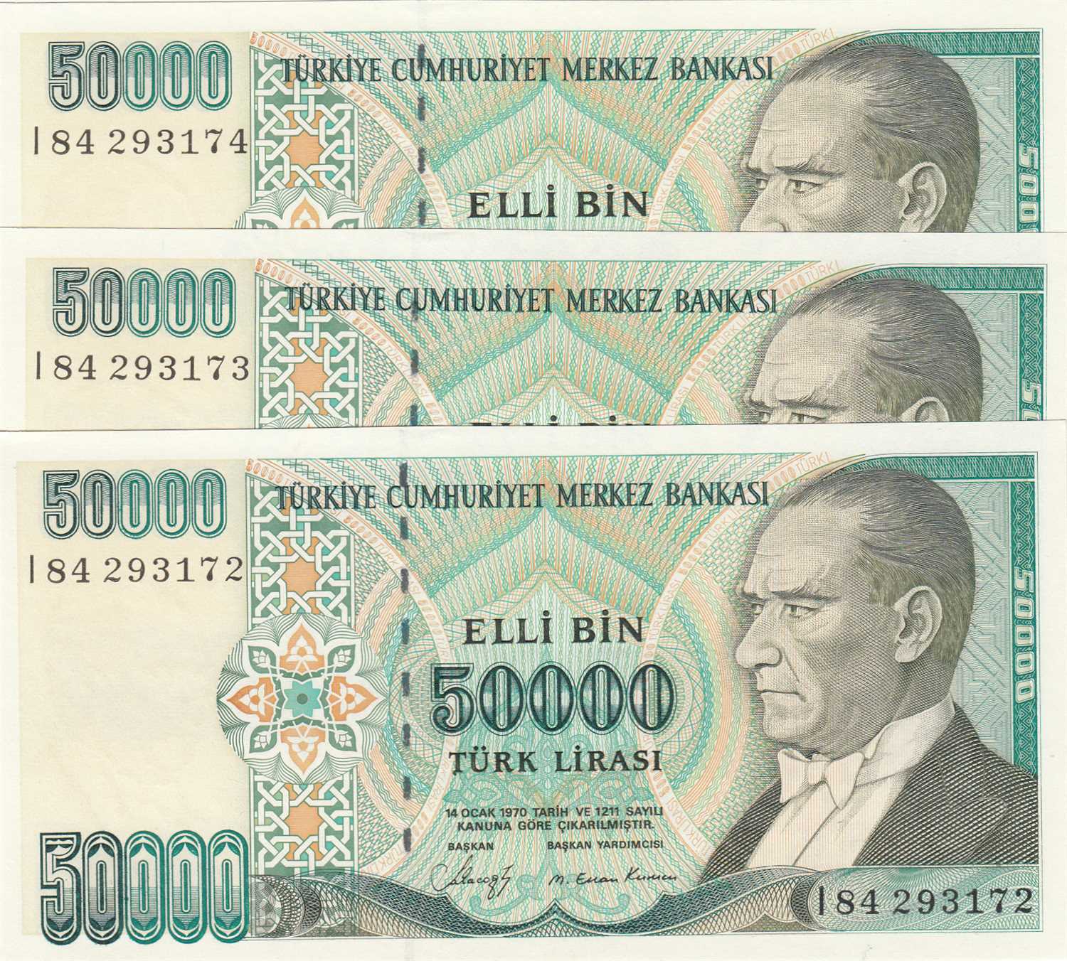 7. EMİSYON 50.000 LİRA I84 SERİ TAKİPLİ 3 LÜ LOT ÇİL