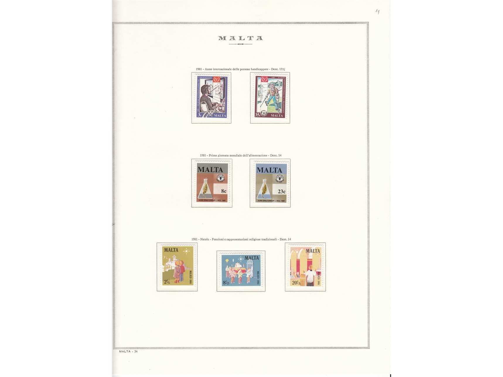 MARİNİ ALBÜM SAYFASINDA MALTA HAVİTLİ TAM SERİ MNH PULLAR