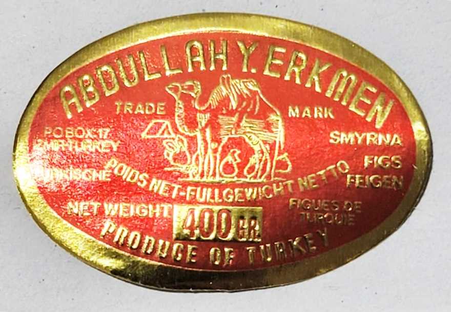 ABDULLAH Y. ERKMEN İNCİR AMBALAJ ETİKETİ KIRMIZI OVAL 400 GRAM