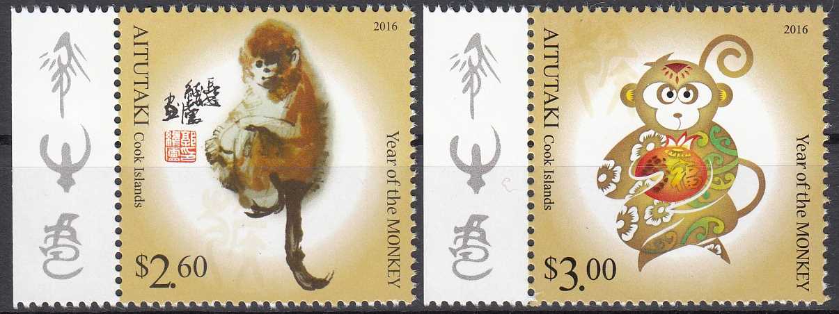 AITUTAKI COOK ADALARI 2015 ÇİN YENİ YILI (2016) - MAYMUN YILI TAM SERİ MNH