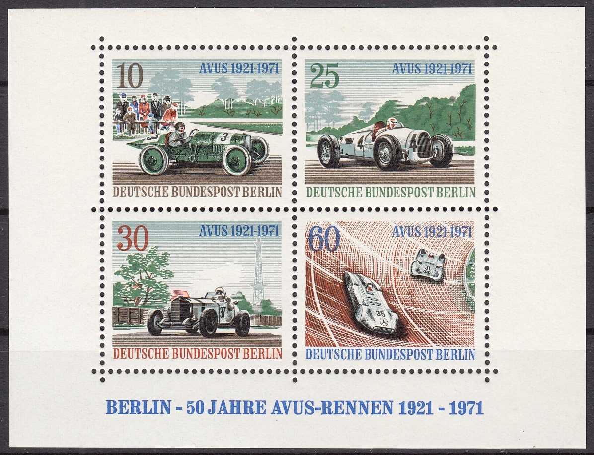 ALMANYA - BERLİN 1971 AVUS ARABA YARIŞININ 50. YILDÖNÜMÜ BLOK MNH