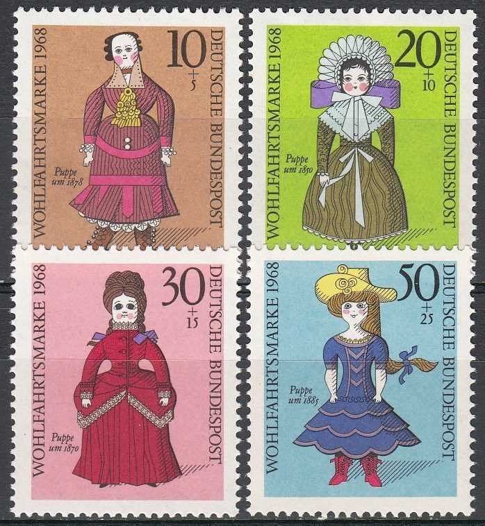 ALMANYA 1968 OYUNCAK BEBEKLER TAM SERİ MNH