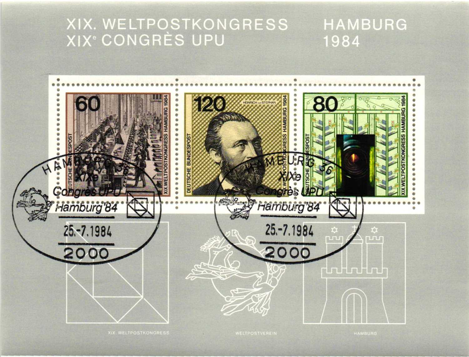ALMANYA 1984 EVRENSEL POSTA BİRLİĞİ İLK GÜN DAMGALI BLOK (105 x 139mm) MNH