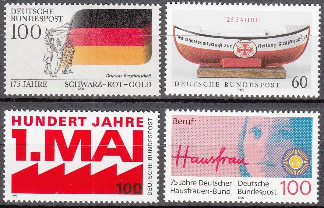 ALMANYA 1990 1 MAYIS - KADINLAR DERNEĞİ - ÖĞRENCİ TOPLULUĞU - CAN KURTARMA BOTU 4 TAM SERİ MNH