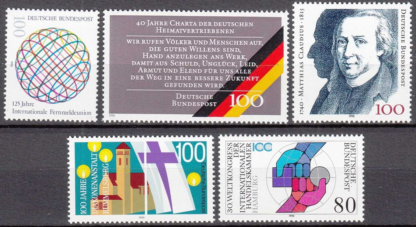 ALMANYA 1990 UIT - HEMŞİRELİK - MÜLTECİLER - TİCARET ODASI - ŞAİR MATTİAS 5 TAM SERİ MNH