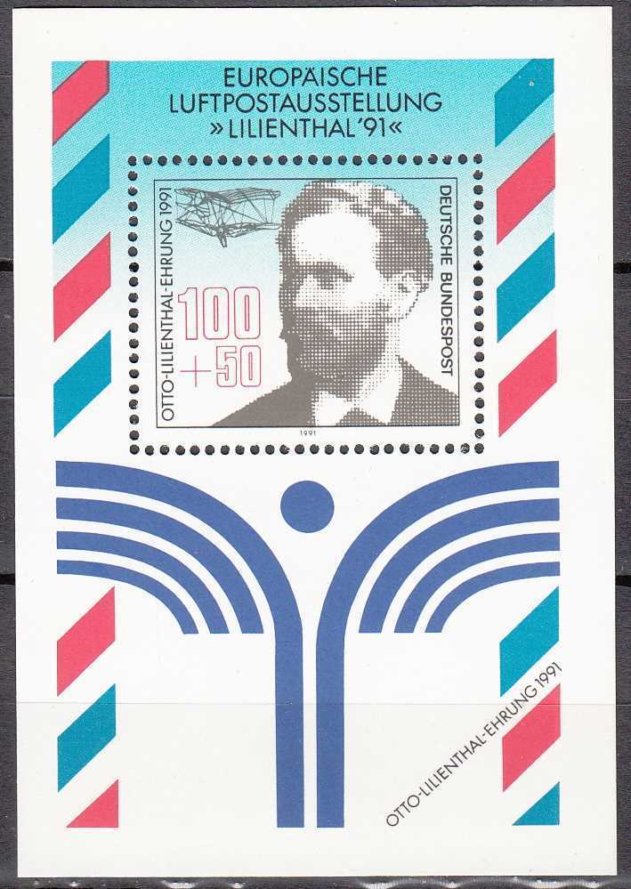 ALMANYA 1991 AİRMAİL SERGİ LİLİENTHAL BLOK MNH (57 x 83 mm)