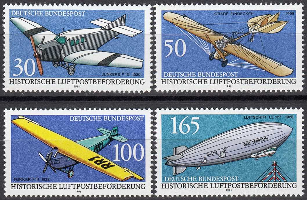 ALMANYA 1991 HAVA POSTASI TARİHİ TAM SERİ MNH