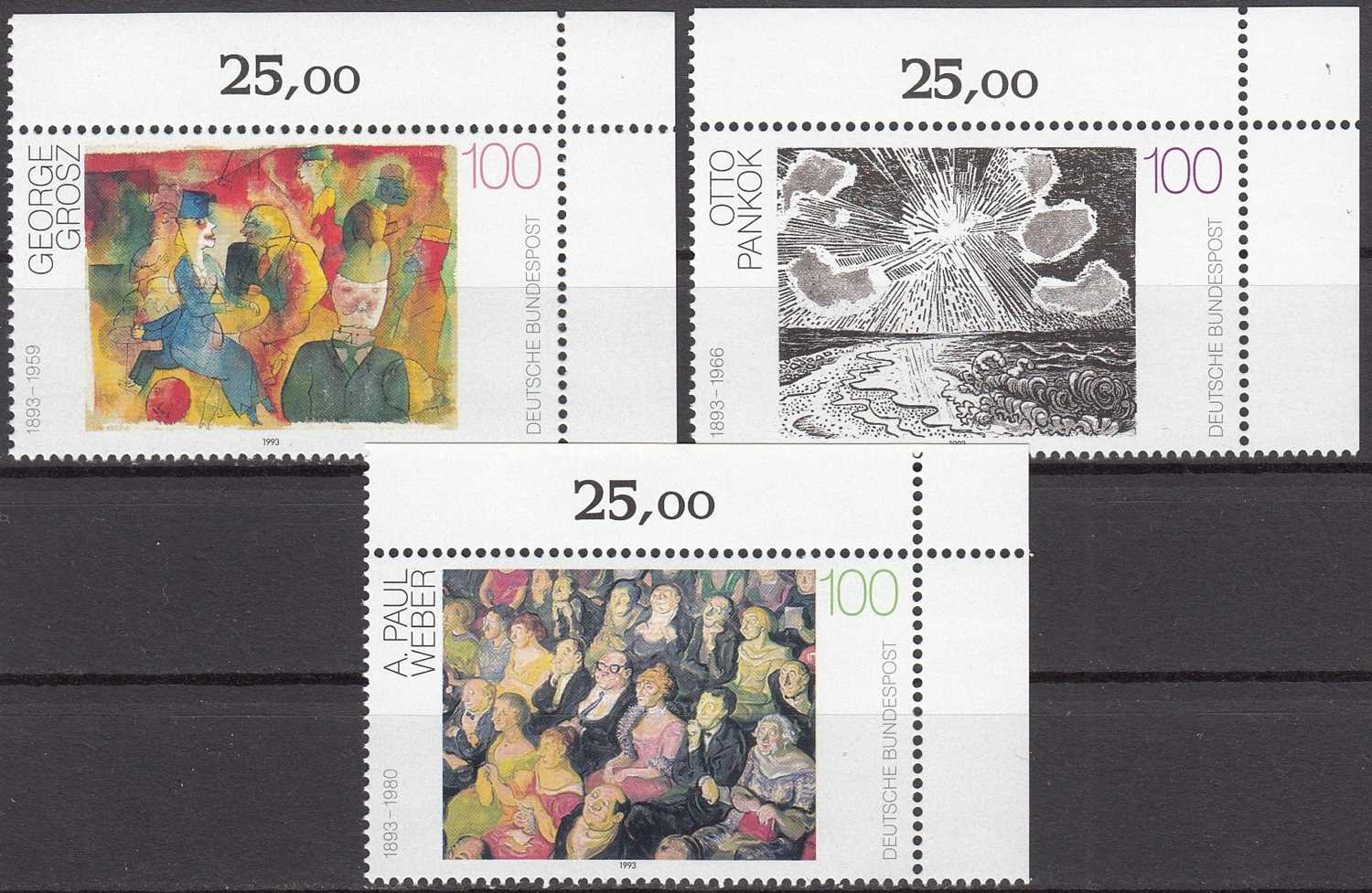 ALMANYA 1993 RESSAMLAR WEBER, PANKOK VE GROSZ'UN 100. DOĞUM YILI TAM SERİ MNH