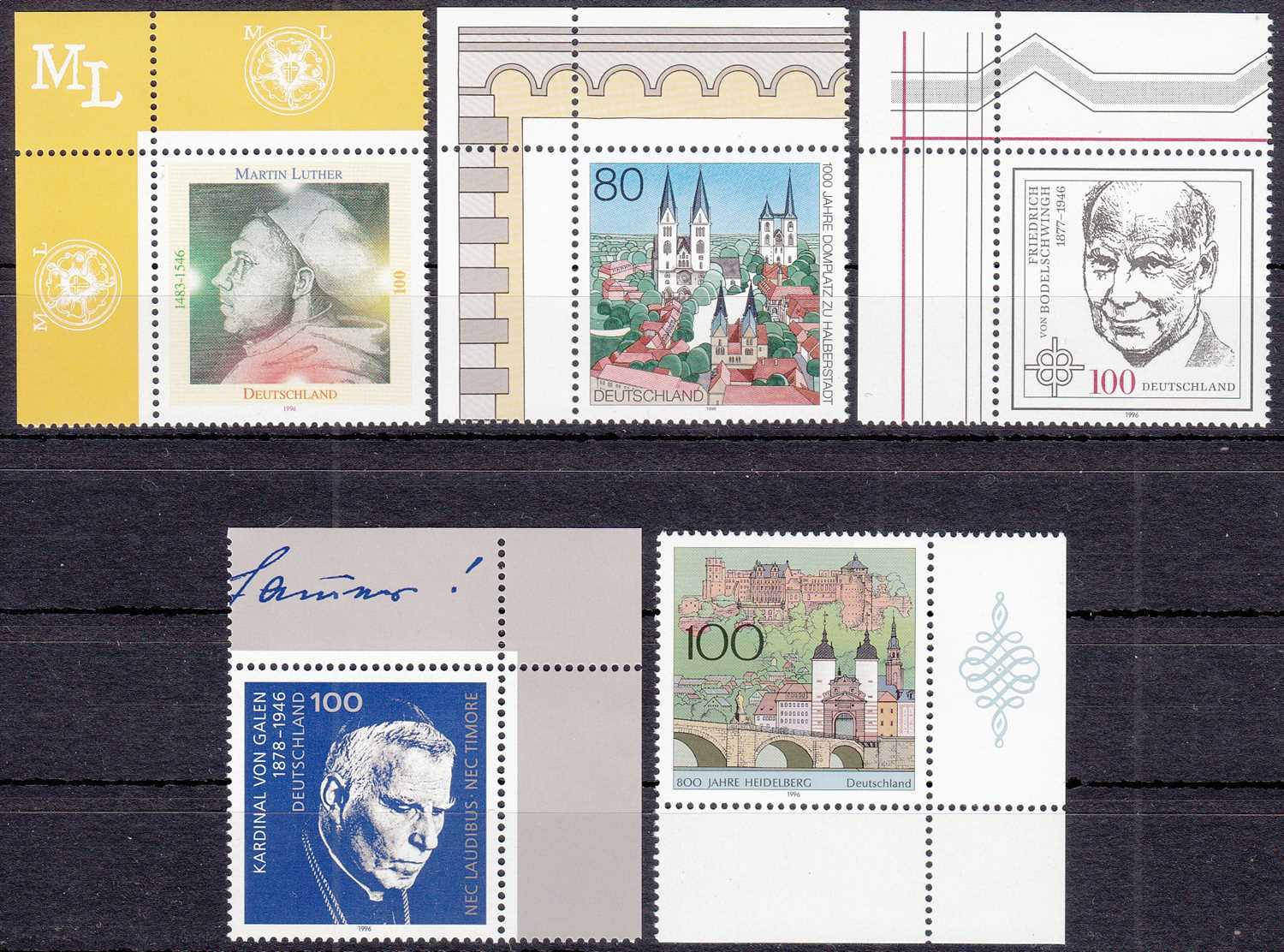 ALMANYA 1996 MARTİN LUTHER, KATEDRAL, KARDİNAL, HEİDELBERG, FRİEDRİCH KÖŞE PULLAR 5 TAM SERİ MNH