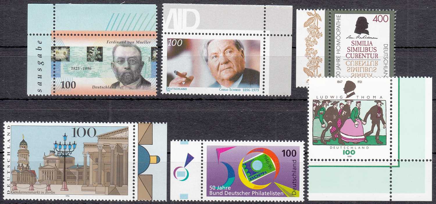ALMANYA 1996 MUELLER, SCHMİD, PUL GÜNÜ, ŞEHİR, THOMAS, HOMEOPATİ 6 TAM SERİ MNH