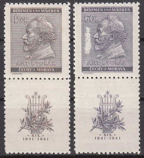 ALMANYA BOHEMYA VE MORAVYA 1941 ANTONİN DVORAK IN DOĞUMUNUN 100. YILDÖNÜMÜ BANDALETLİ TAM SERİ MNH