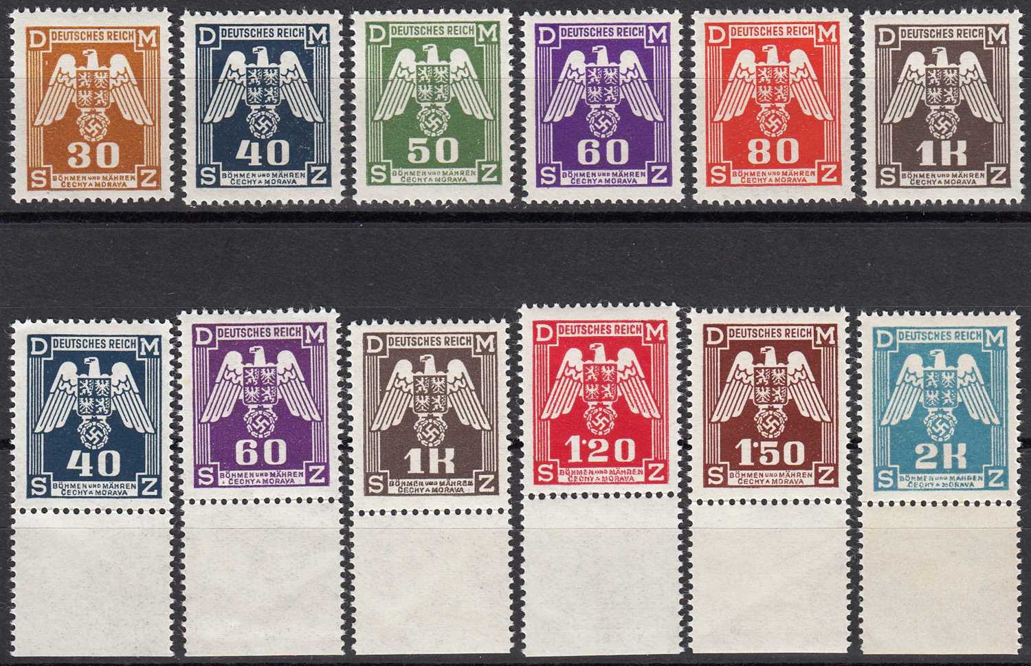 ALMANYA BOHEMYA VE MORAVYA 1943 DEVLET HİZMETİ PULLARI (SERİDEN 3 PUL EKSİK) MNH