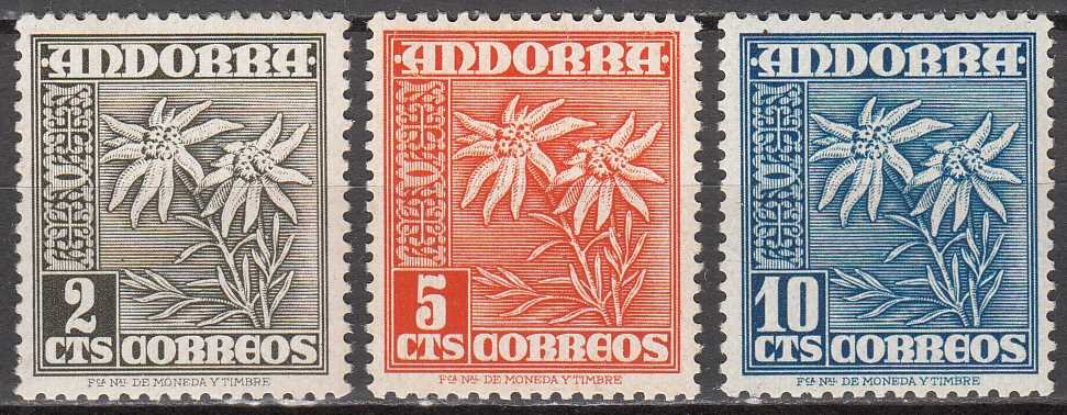 ANDORRA İSPANYA 1951 ÇİÇEKLER DAMGASIZ PARÇA PULLAR (SERİDEN 2 PUL EKSİK)