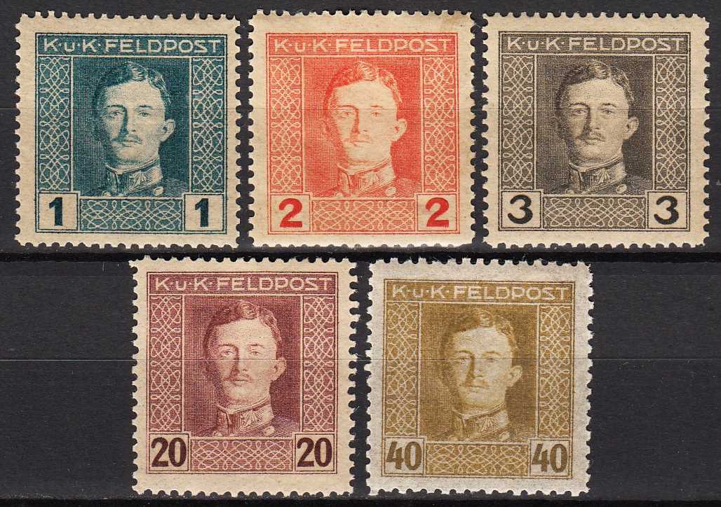 AVUSTURYA - MACARİSTAN 1917 İMPARATOR I. KARL DAMGASIZ ZAMKLI ŞARNİYERLİ PARÇA PULLAR
