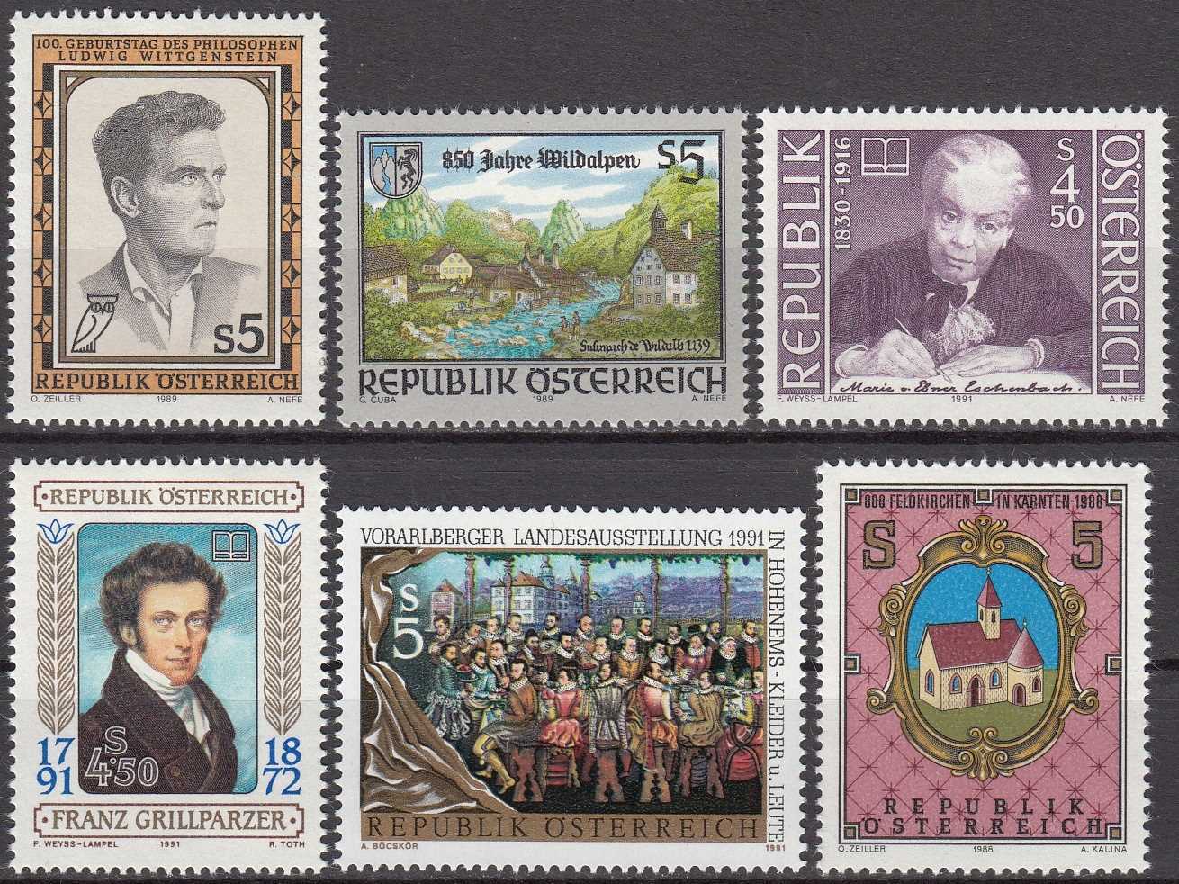 AVUSTURYA 1988 - 89 - 91 YILI 6 TAM SERİ MNH