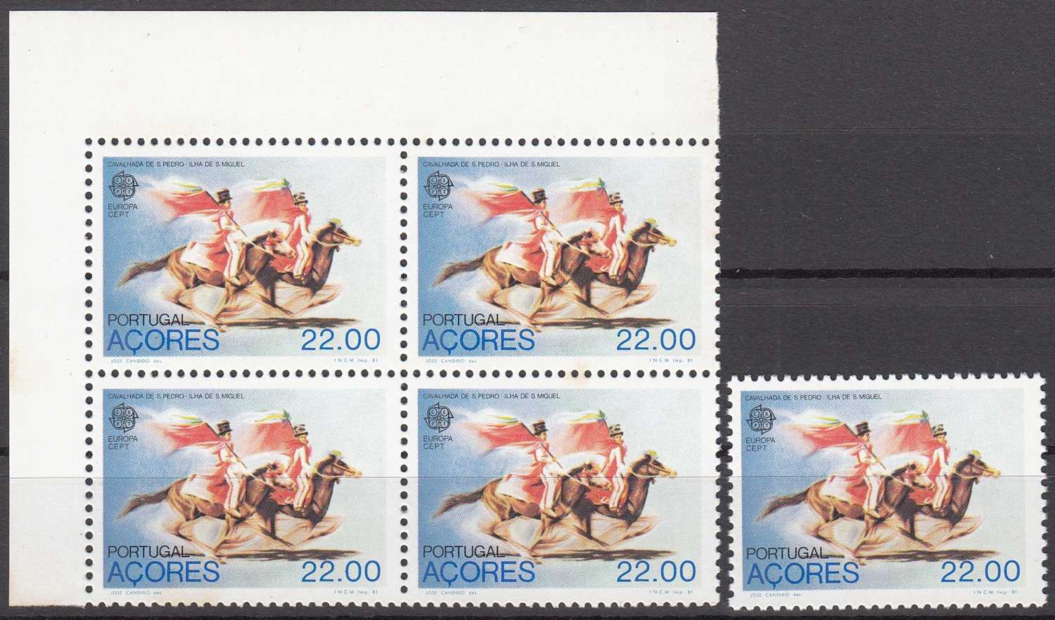 AZOR ADALARI (PORTEKİZ) 1981 EUROPA CEPT - FOLKLÖR DBL VE TEK PUL TAM SERİ MNH