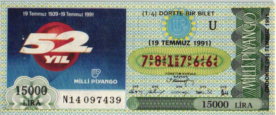 ÇEYREK BİLET MİLLİ PİYANGO