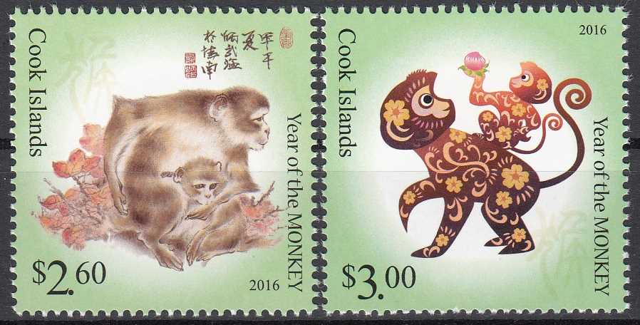 COOK ADALARI 2015 ÇİN YENİ YILI (2016) - MAYMUN YILI TAM SERİ MNH
