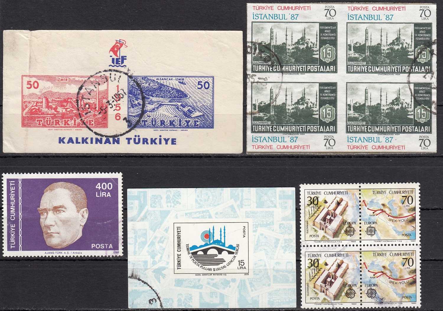 CUMHURİYET DAMGALI BLOK VE BLOK İÇİ PULLAR 5 Lİ LOT