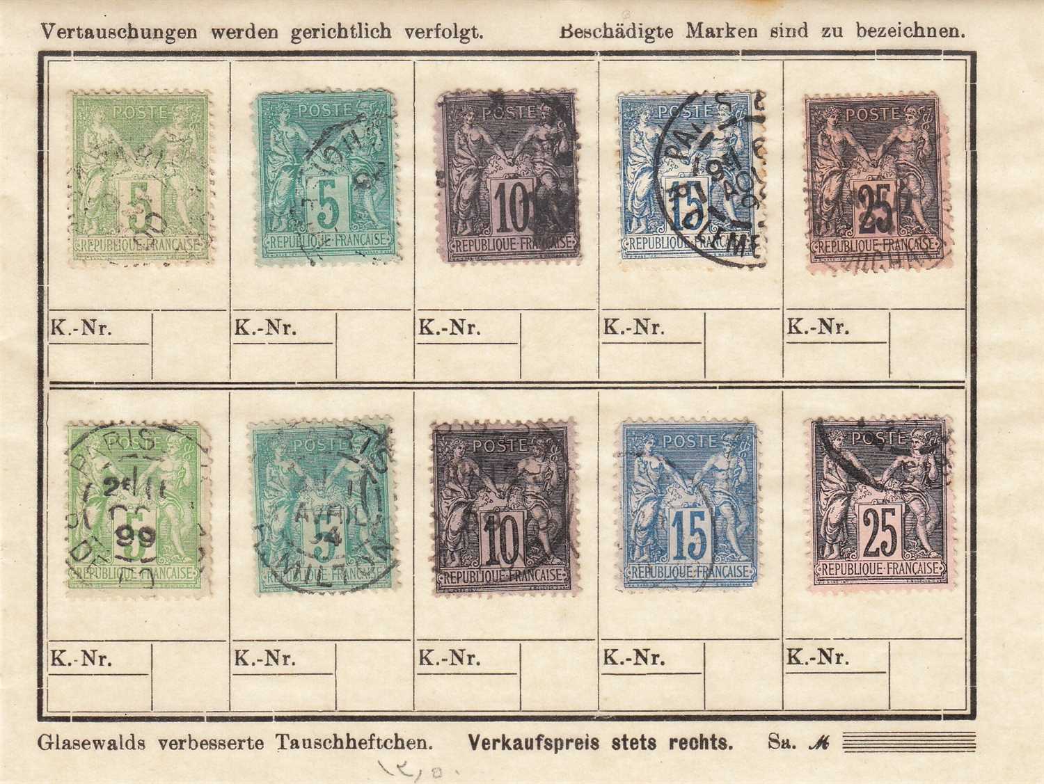 FRANSA 1876 - 1899 PAX VE MERKÜR SERİSİ DAMGALI ŞARNİYERLİ PARÇA PULLAR