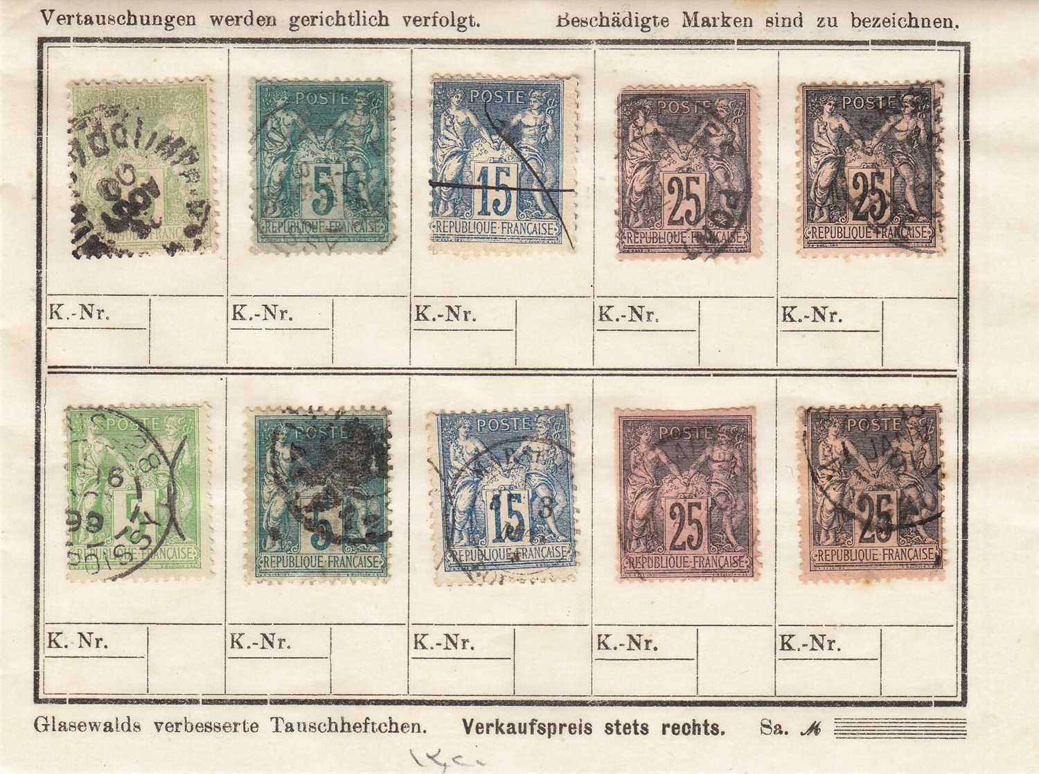 FRANSA 1876 - 1899 PAX VE MERKÜR SERİSİ DAMGALI ŞARNİYERLİ PARÇA PULLAR