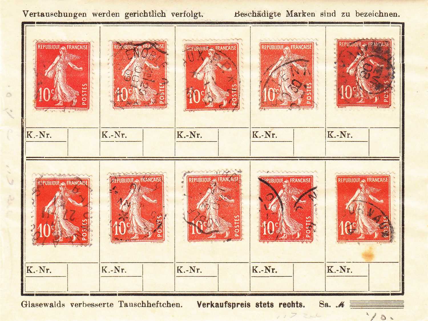FRANSA 1906 - 1920 ÇİFTÇİ 10 CENT DAMGA ÖRNEKLERİ ŞARNİYERLİ
