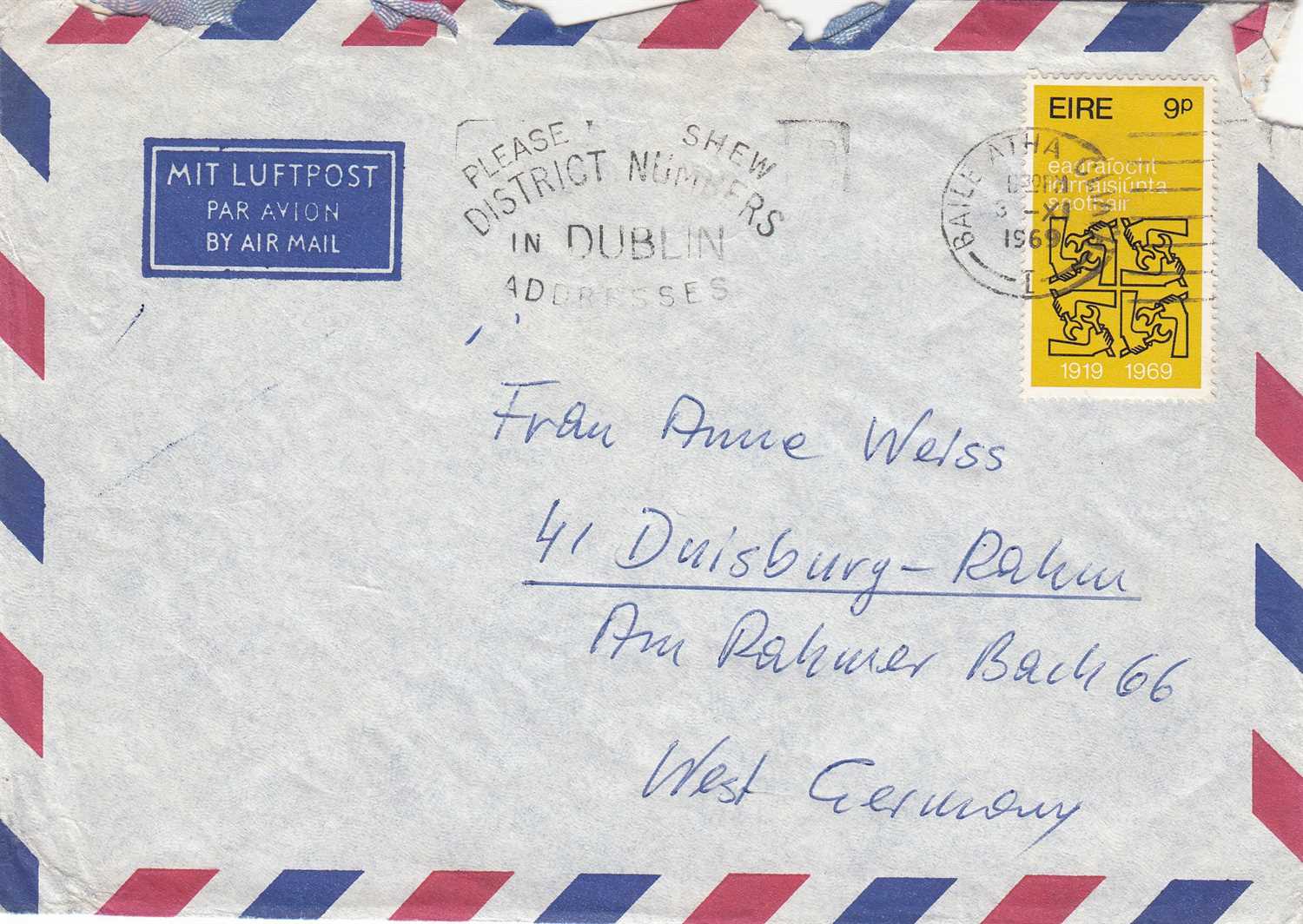 İRLANDA 1969 POSTADAN GEÇMİŞ FLAMLI ZARF