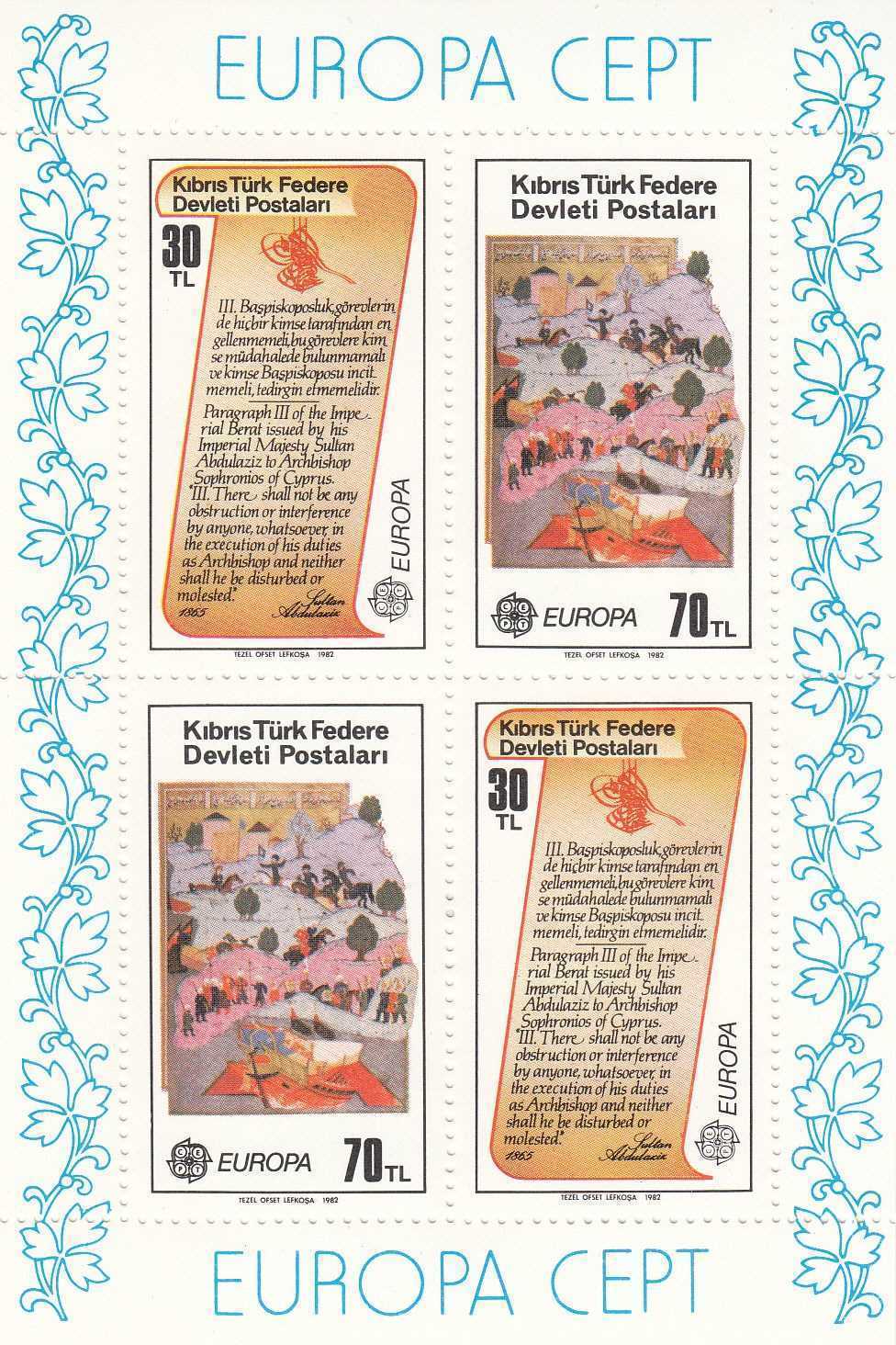 KKTC 1982 EUROPA CEPT HATIRA BLOK MNH KATALOG: 100 TL