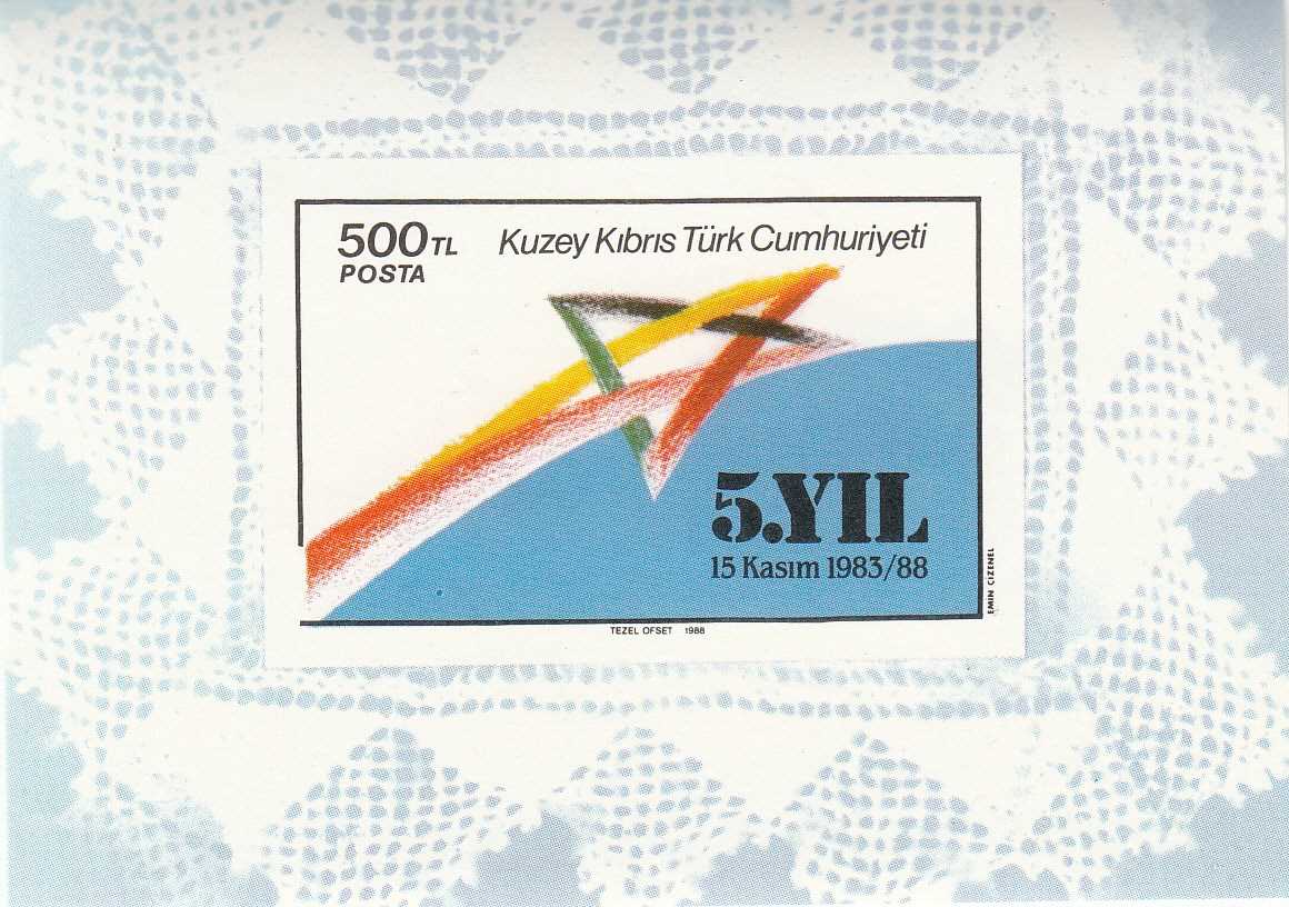 KKTC 1988 KUZEY KIBRIS TÜRK CUMHURİYETİNİN 5. YILI HATIRA BLOKU MNH