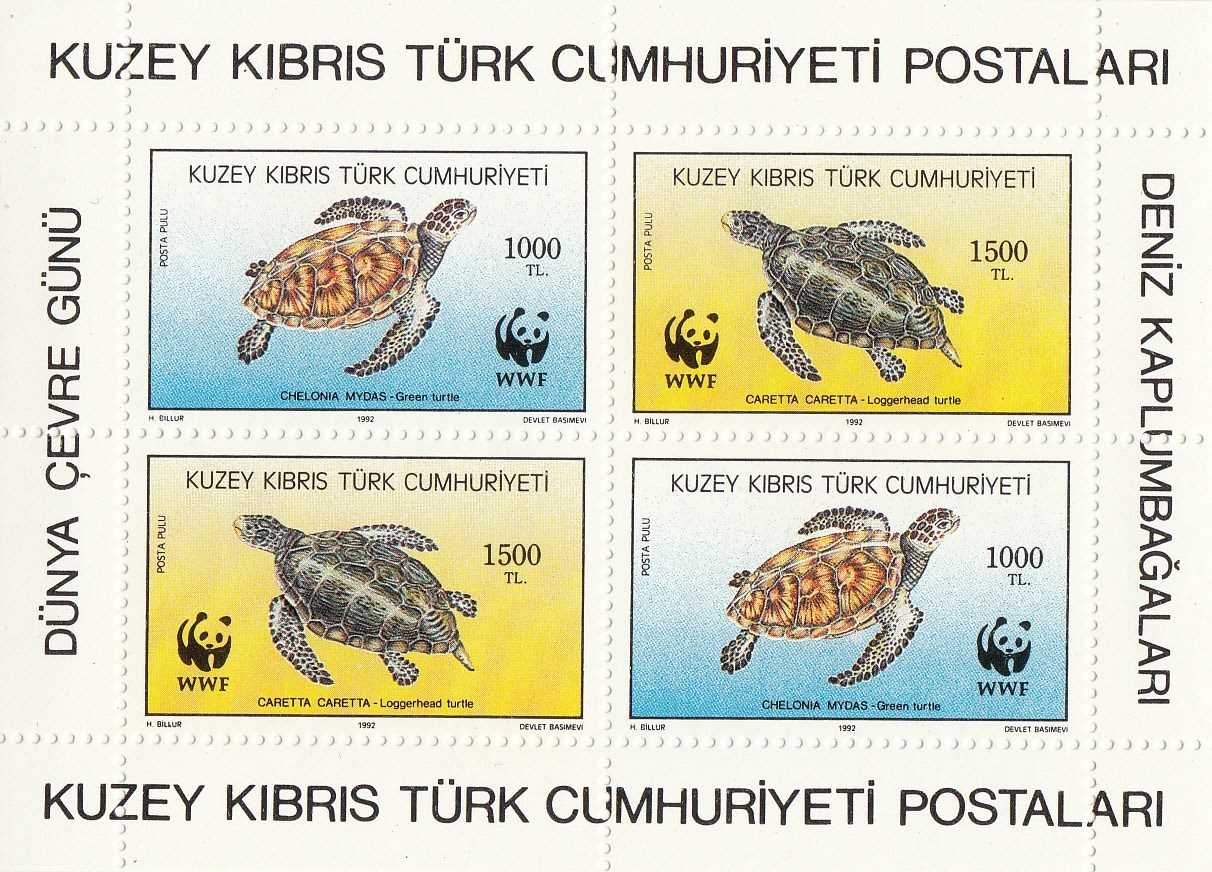 KKTC 1992 DÜNYA ÇEVRE GÜNÜ HATIRA BLOKU - DENİZ KAPLUMBAĞALARI MNH KATALOG: 135 TL
