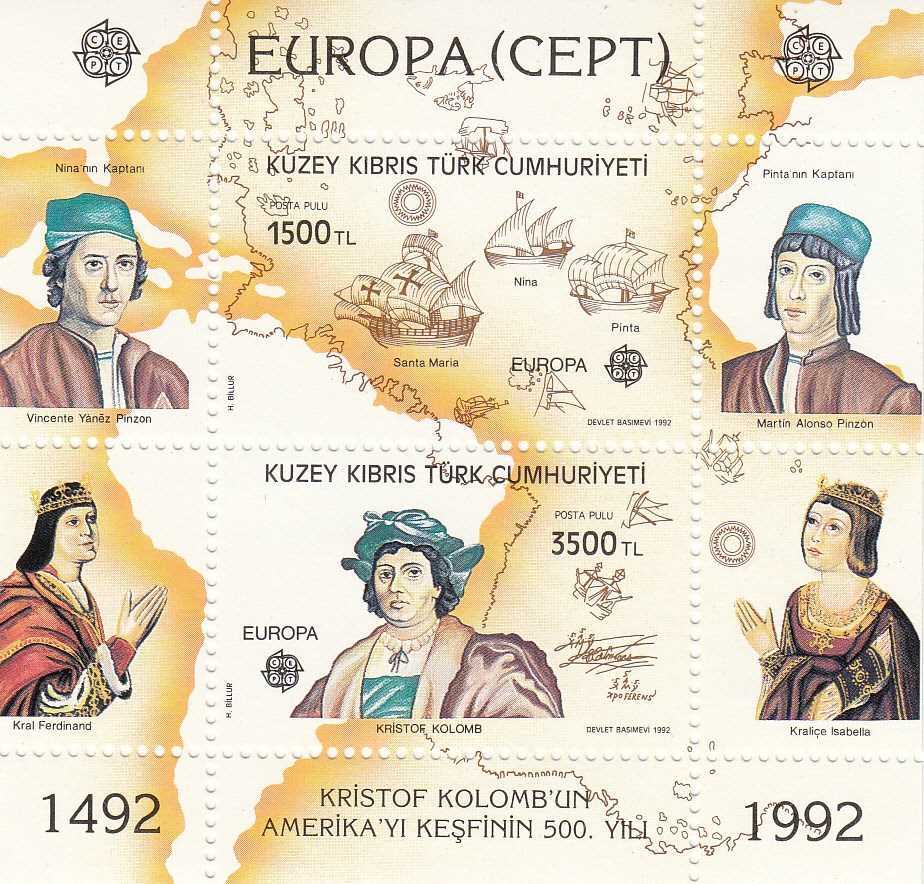 KKTC 1992 EUROPA CEPT HATIRA BLOK MNH KATALOG: 150 TL