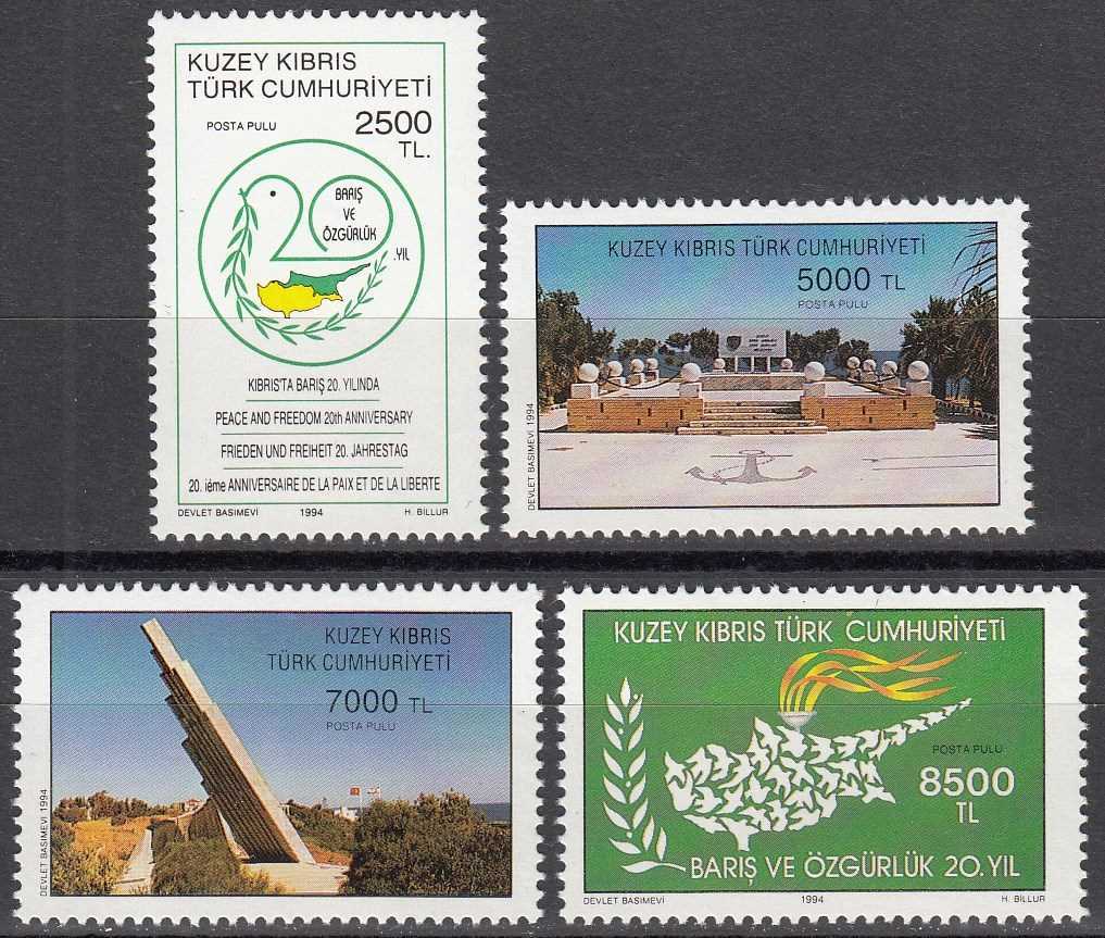 KKTC 1994 KIBRIS BARIŞ HAREKATININ 20. YILI TAM SERİ MNH KATALOG: 130 TL