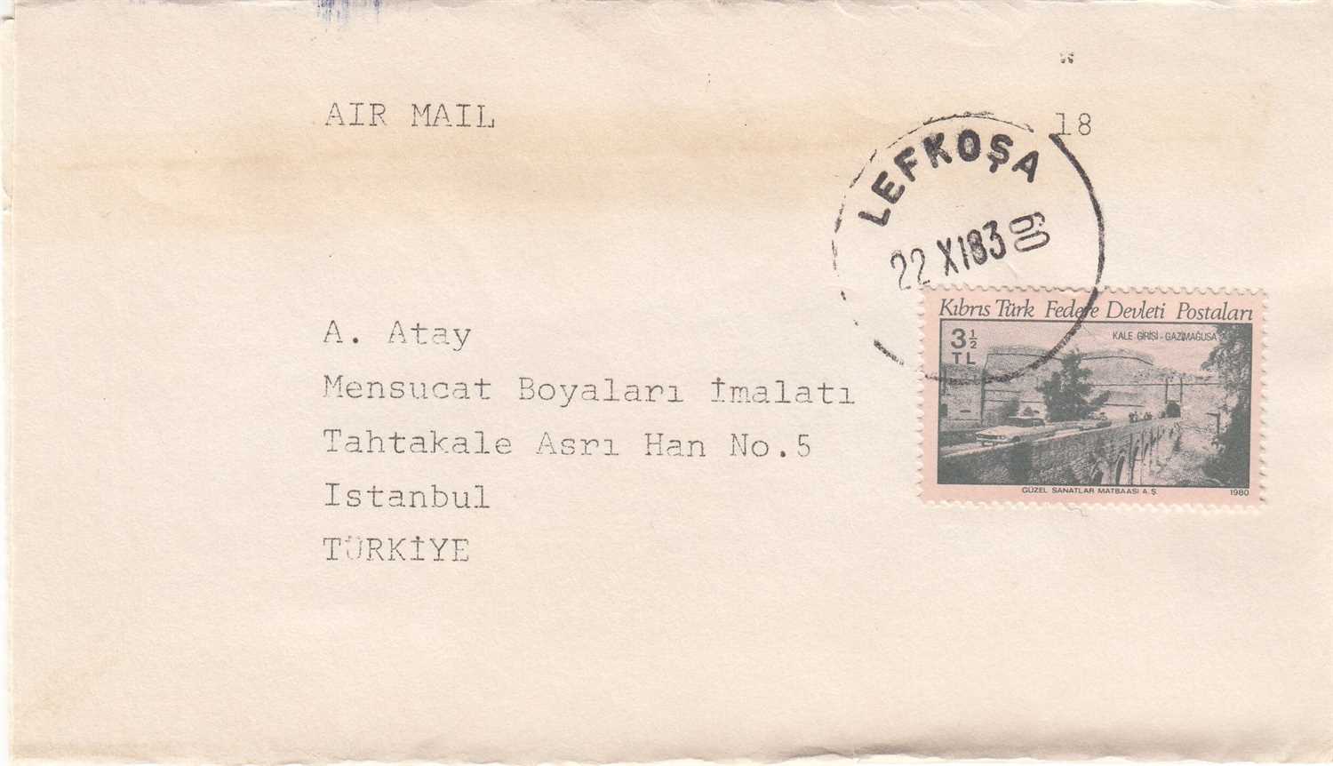 KUZEY KIBRIS TÜRK CUMHURİYETİ AİR MAİL HAVA YOLU POSTASI ZARFI