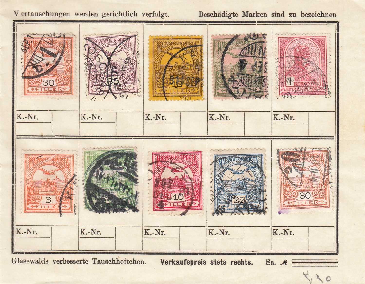 MACARİSTAN 1909 - 1913 SAİNT STEPHEN TACI ŞARNİYERLİ PARÇA PULLAR