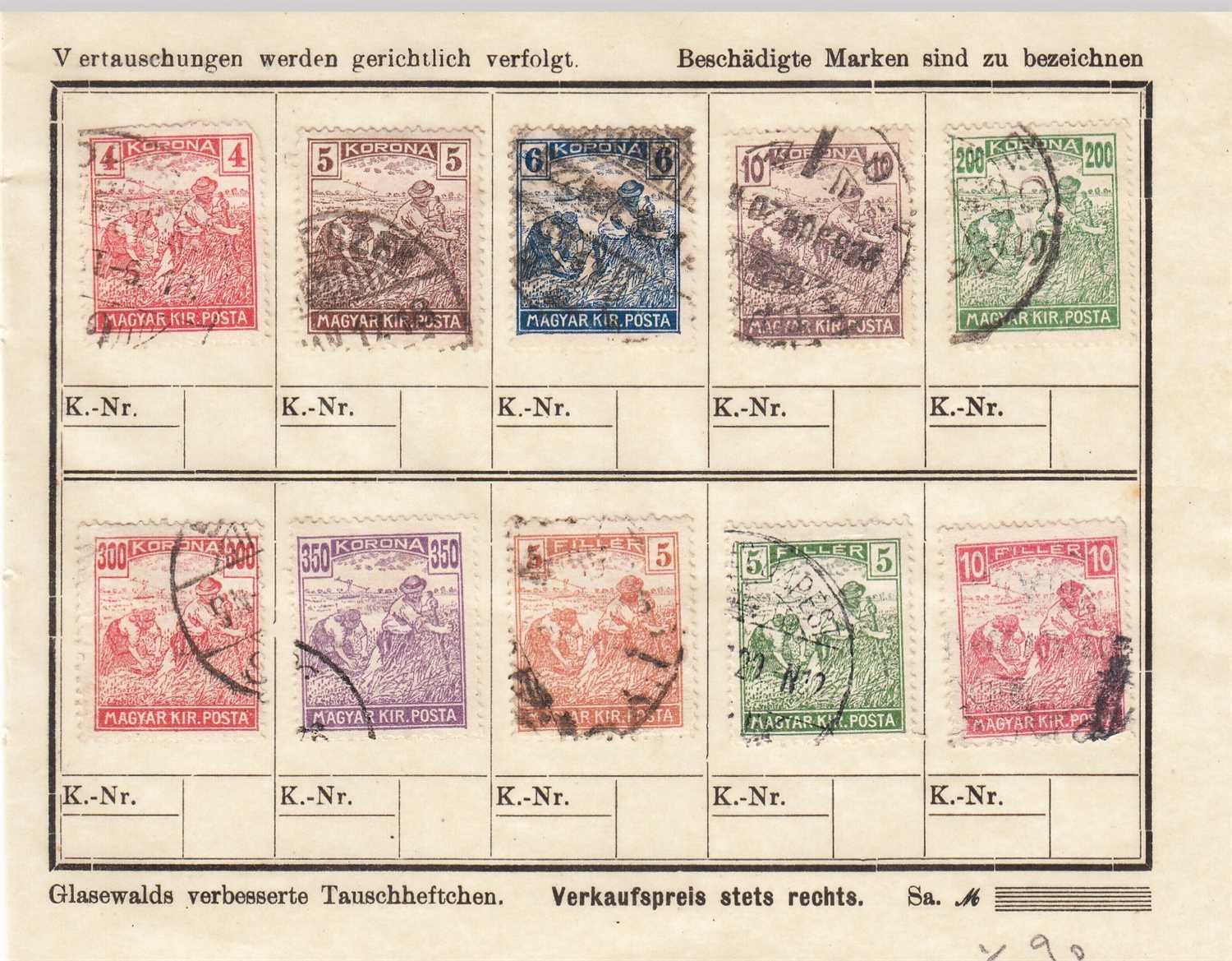 MACARİSTAN 1916 - 1920 MACAR POSTASI DAMGALI ŞARNİYERLİ PARÇA PULLAR