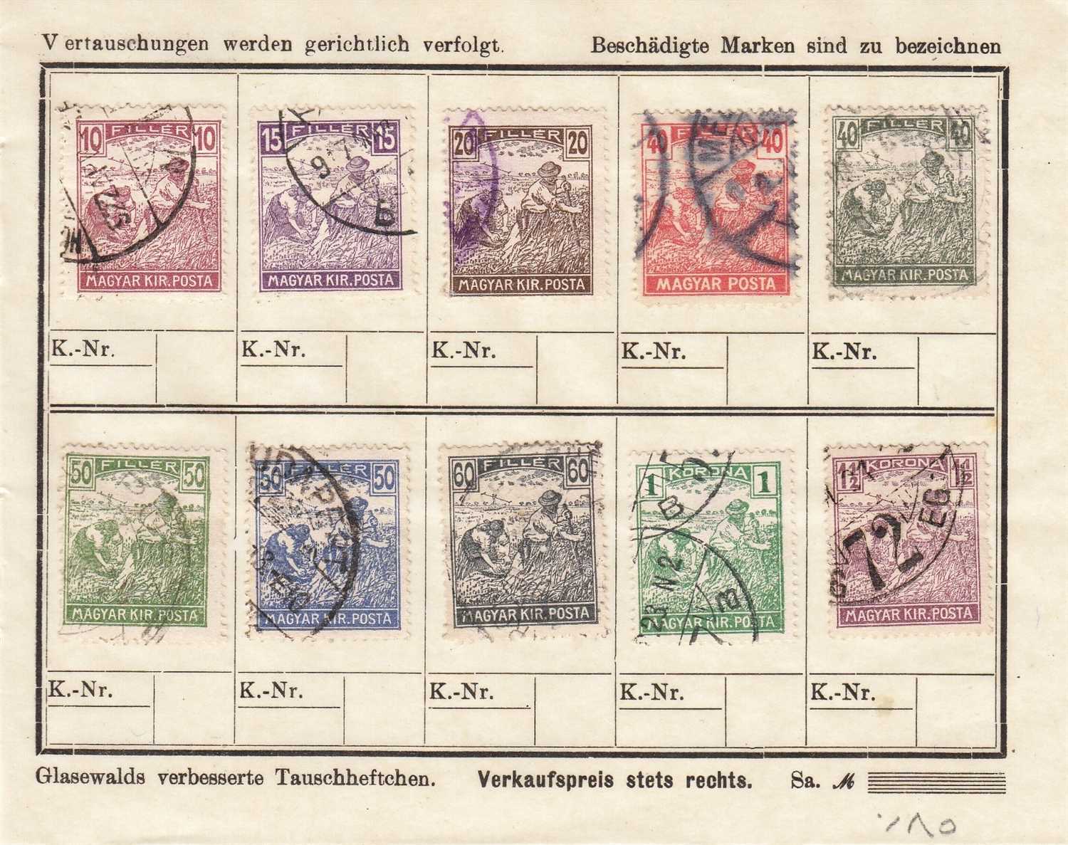 MACARİSTAN 1916 - 1920 MACAR POSTASI DAMGALI ŞARNİYERLİ PARÇA PULLAR