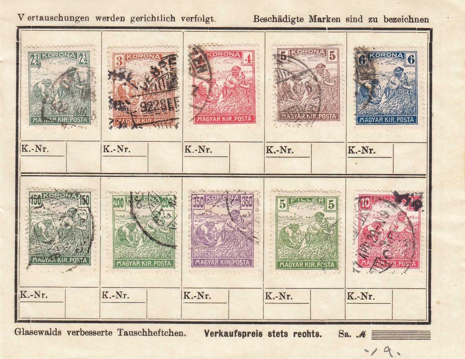 MACARİSTAN 1916 - 1920 MACAR POSTASI DAMGALI ŞARNİYERLİ PARÇA PULLAR