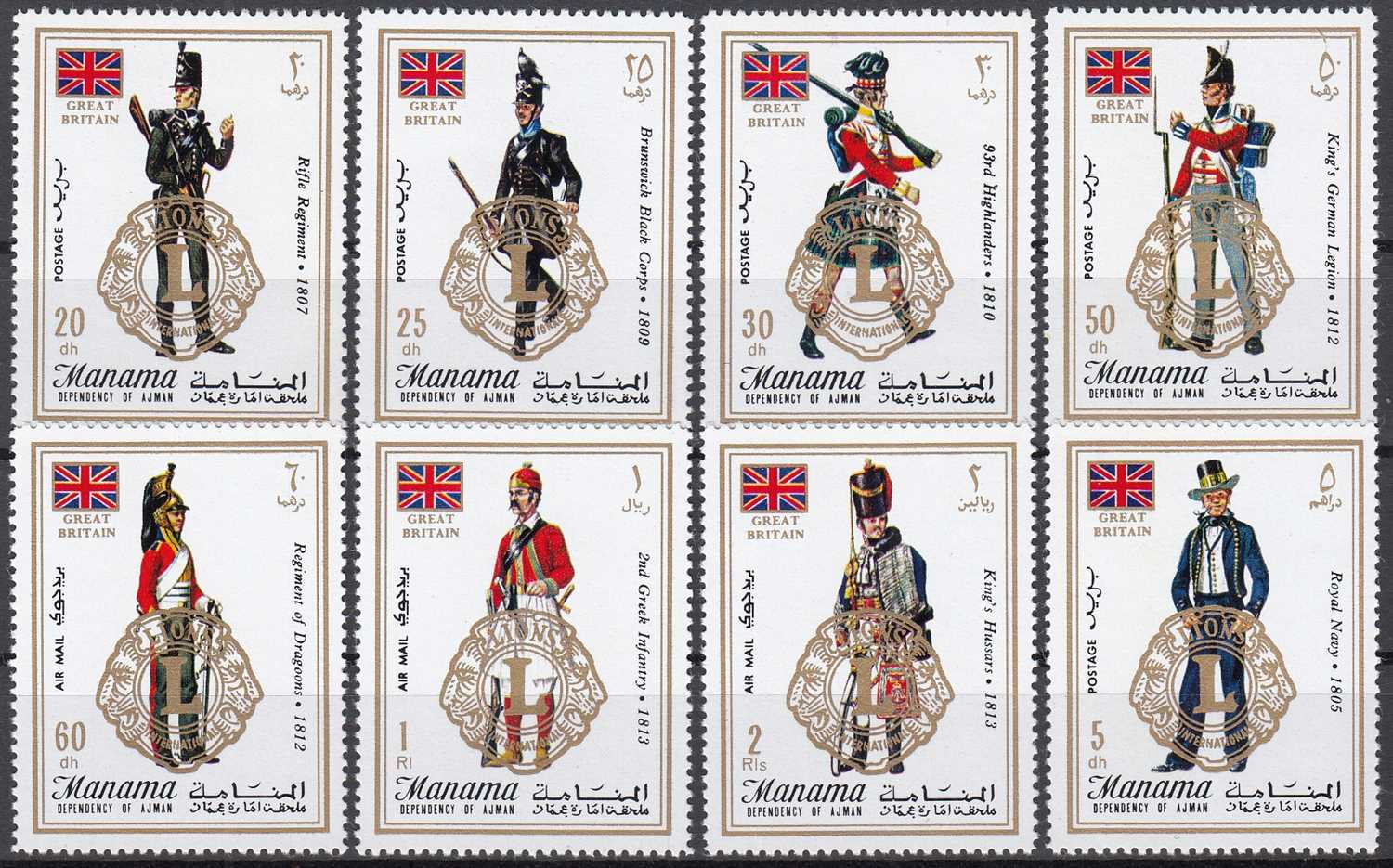 MANAMA - AJMAN 1971 İNGİLİZ ASKERİ ÜNİFORMALAR TAM SERİ MNH