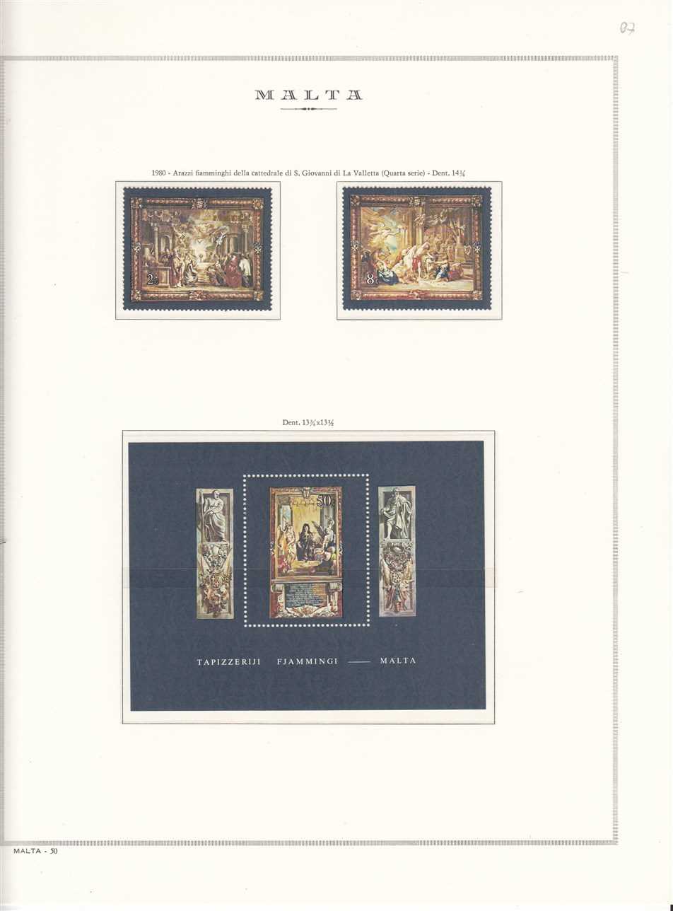 MARİNİ ALBÜM SAYFASINDA MALTA 1980 DUVAR HALISI TAM SERİ VE BLOK HAVİTLİ MNH