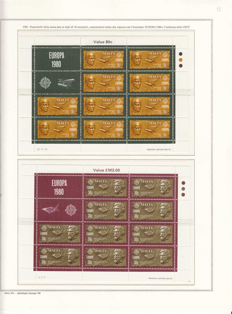 MARİNİ ALBÜM SAYFASINDA MALTA 1980 EUROPA CEPT - ANITLAR TAM SERİ TABAKALAR HAVİTLİ MNH