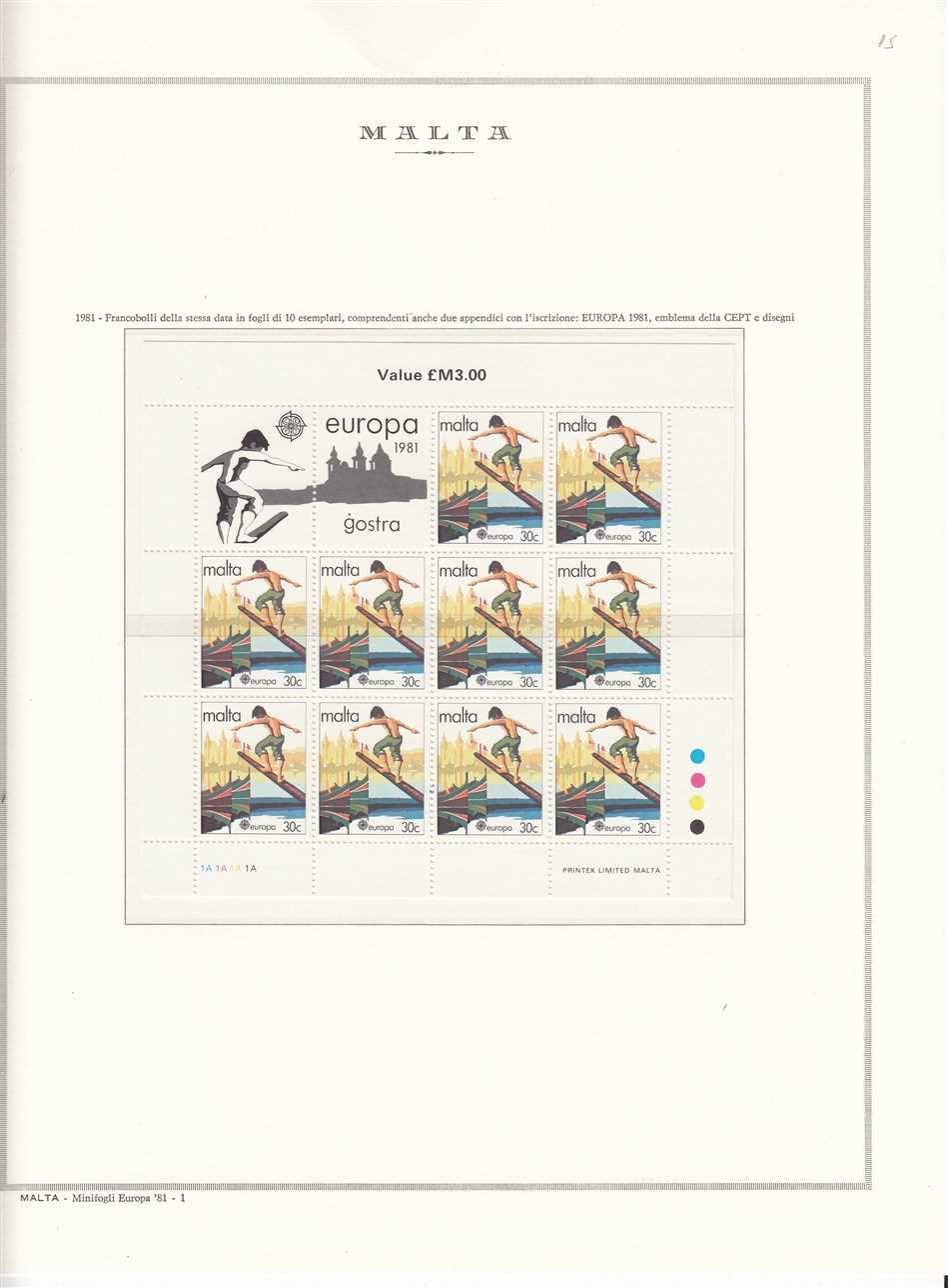 MARİNİ ALBÜM SAYFASINDA MALTA 1981 EUROPA CEPT - GELENEKLER VE HALK BİLİMİ TABAKA HAVİTLİ MNH